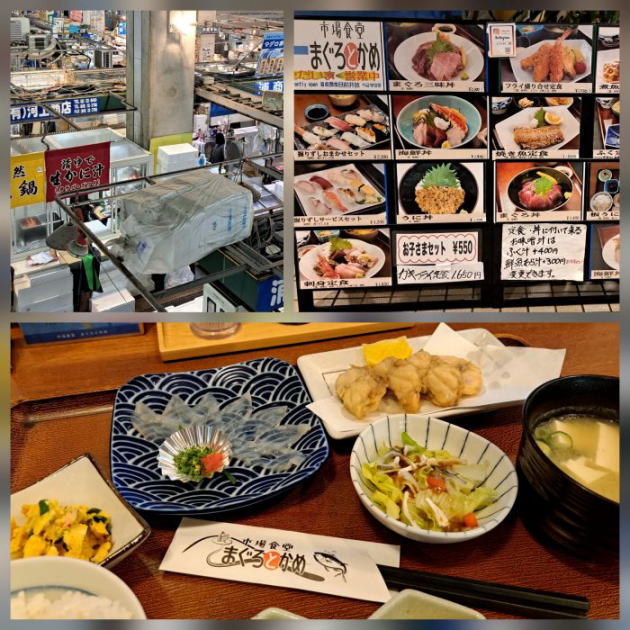 | 7:00 唐戸市場 「まぐろとかめ」でふく定食 2300円 | ||