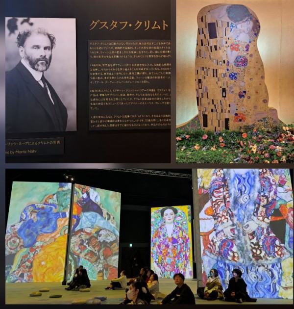 | 京都からちょこっと寄り道。大阪に行ってきました。 ウィ−ン出身の象徴主義画家、グスタフ・クリムトは、女性像を中心にした絵画やスケッチで大人気。 この展示館はクリムトの絵画を見るのではなく、没入型展覧会 |
