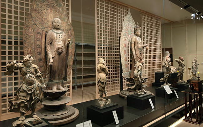 | 令和2年に完成した宝物殿は、女人高野室生寺が所有する宝物の一部を展示している建物です。 かつて金堂や弥勒堂に安置していた国宝や重要文化財の美しい仏像を展示しており、 室生寺の仏像約3分の1にあたる9体が収蔵されています。 |