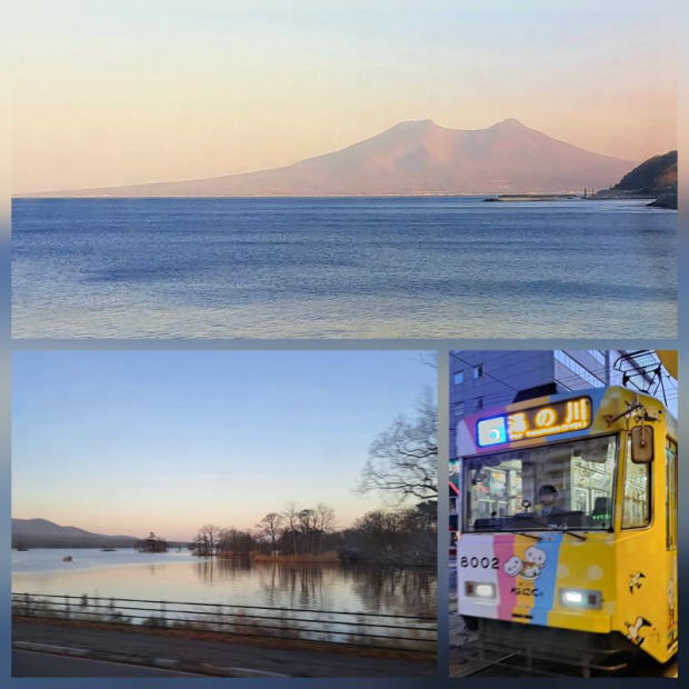 | 特急列車で噴火湾越しの駒ヶ岳を眺め、大沼公園を通り函館に戻ってきました。 湯の川温泉行きの路面電車に乗って。 |
