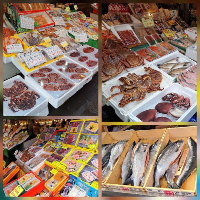 | 釧路駅では1時間ほどあったので和商市場に行ってみました。 正真正銘のししゃもは釧路産、漁期は1ヶ月と短いそうです。 |