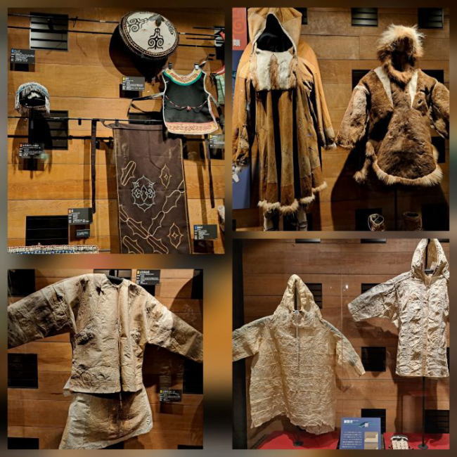 | アザラシの腸で作られた防水パーカなど、素材が持つ特徴を活かした機能性に優れる衣服は 初めてみるものが多く、アザラシの腸が耐水の衣服になるなんてビックリ。 厳しい寒さに耐えて生きてきた北方民族の知恵や技術を学べました。 |
