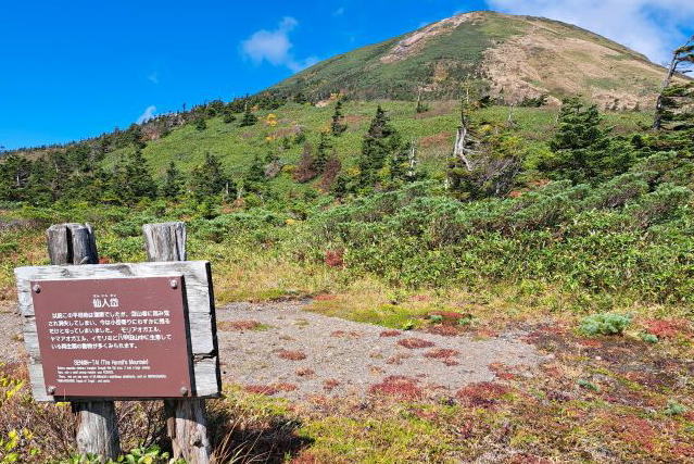 | 11:11 仙人岱 以前このあたりは湿原でしたが消失してしまったようです。これから登る大岳が見えてきました。 |