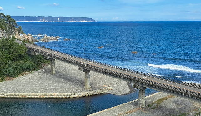 | 三陸鉄道沿線で眺めのいい箇所を走っています。ここでも一時停止しました。 | ||