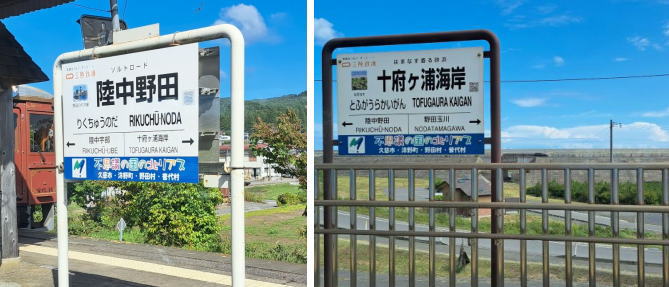 | 宮古を過ぎて、このあたりは震災3年後になって復活したところ、 駅名の看板も新しいね。 | ||