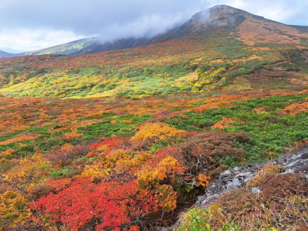 | おときゅう4日目、おときゅうパスは今日が最終日です。紅葉の山、2座目は栗駒山。 神が降臨しました。本気出した栗駒山の神の絨毯 |