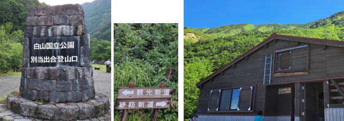 | 市ノ瀬から5時20分頃のシャトルバス(往復2000円)に乗って、別当出合で山仲間と合流しました。 白山ではいつも南竜のテント場泊でしたが、今回初めて室堂に泊まります。 だから行きは砂防新道を登りますが、帰りは観光新道を下山することができます。 |