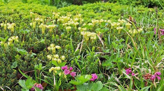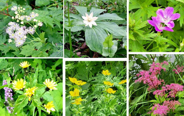 | 室堂周辺のお花畑に咲く花と違って、観光新道は、背丈の高い花が多いです。 | ||