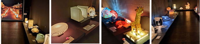 | 「美濃和紙あかりア−ト館」では、 美濃市で毎年秋に開催される「美濃和紙あかりア−ト展」の入賞作品が見られます。 |
