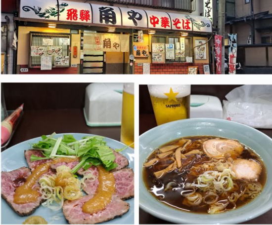 | 午後6時30分、高山のシティホテルに着きました。ここはホテル前に駐車場があり、 櫻山八幡宮や宮川の朝市も歩いてすぐだし、天然温泉もあるから、とっても便利。 登山の疲れと、ドライブの疲れで早くビ−ルが飲みた〜い♪。ホテル前の「角や」に速攻入店〜。 飛騨牛の炙りで一杯!。中華そばで一杯!。幸せだぁ〜(^。^)y-.。o○ |