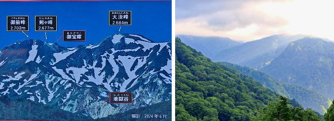 | ここは白山のユネスコ世界ジオパ−クの一部で、 急峻な岩峰や山あいをぬって作られた道には、いくつかの見学スポットがあります。 |