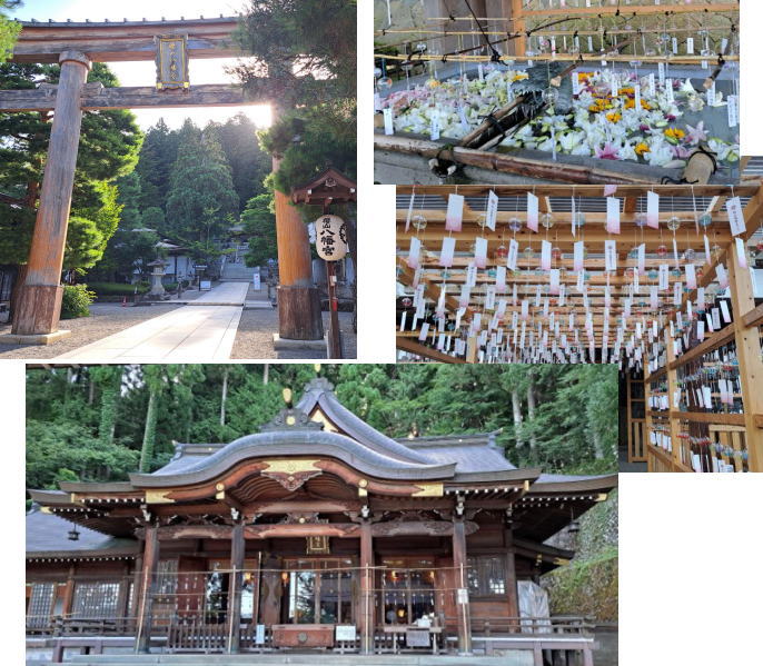 | ここ数日は早起き続きだったので、今朝も早くからお目覚め(笑) ホテルの温泉に入ってから、 いつものモ−ニングル−ティ−ン♪ まずは 櫻山八幡宮。風鈴が涼しげです。 |
