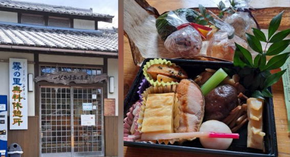 | 9:30 高原の霧の里休憩所で、宿で作ってもらった熊野古道弁当を広げました。 |