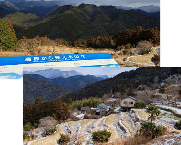 | 高原の集落からの眺め、棚田もあります。 高原の集落には、民宿やゲストハウスなどもあり、ハイシ−ズンには賑わうでしょう。 |